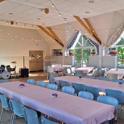 La salle polyvalente peut accueillir 120 personnes assises et 150 debout. Il y a également un parking afin d’y garer vos véhicules et ceux de vos invités.